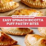 This Addictive Spinach Stuffed Pastry features flaky puff pastry filled with a creamy mixture of sautéed spinach, ricotta, and Parmesan cheese. Perfect as a savory snack or appetizer, these golden pockets are easy to prepare and bake to perfection with a beautiful golden crust.
