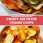 Discover a guilt-free snack with these Air Fryer Veggie Chips made from thinly sliced carrots, zucchini, and sweet potatoes. Lightly seasoned and crisped to perfection in the air fryer, they offer a healthy alternative to traditional chips, packed with flavor and nutrients.