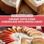 This Apple Cider Cheesecake pairs beautifully with a hot cup of spiced tea or a cozy mulled wine if you’re celebrating. For a lighter companion, try an orchard apple salad or roasted root vegetables to balance the richness. The autumnal notes bring a lovely harmony when served alongside warm, toasted nuts or cinnamon-spiced baked apples.
