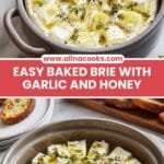 - Serve: Serve the warm baked Brie with sliced baguette or crackers. Guests can scoop out the gooey cheese and enjoy the harmonious taste of garlic and honey.