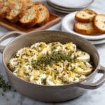 A delightful baked Brie recipe featuring a wheel of creamy Brie cheese infused with thinly sliced garlic, drizzled with sweet honey and olive oil, and optionally topped with fresh rosemary. This warm, gooey appetizer is perfect served with sliced baguette or crackers, offering a harmonious blend of savory and sweet flavors.