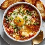 Baked Feta Eggs is a vibrant, Mediterranean-inspired dish combining ripe cherry tomatoes, bell pepper, red onion, and garlic with creamy feta cheese, all baked to perfection. Finished with fresh spinach and baked eggs nestled on top, this easy oven-baked recipe is perfect for a flavorful breakfast, brunch, or light dinner.
