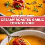 This Best Creamy Roasted Garlic Tomato Soup is a rich and flavorful comfort food classic made with oven-roasted tomatoes and garlic for a naturally sweet and smoky depth. Blended to silky perfection with sautéed onions, tomato paste, and vegetable broth, then finished with organic heavy cream and warming spices, this soup is perfect for a cozy meal. Serve it with a crispy grilled cheese sandwich for the ultimate comforting dining experience.