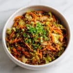 Egg Roll in a Bowl is a delicious, low-carb skillet dish that captures the flavors of a traditional egg roll without the wrapper. Ground beef is cooked with fresh vegetables and seasoned with soy sauce, ginger, and sesame oil to create a warm, savory meal that's quick and easy to prepare. Perfect for a weeknight dinner, this recipe is both satisfying and simple to make.