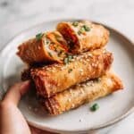 These Crispy Rice Paper Spring Rolls are a delightful appetizer featuring fresh julienned vegetables wrapped in delicate rice paper, then pan-fried to a golden crisp. Perfectly paired with soy sauce and fresh lime juice, they offer a delicious blend of crunchy textures and vibrant flavors, ideal for a light snack or starter.