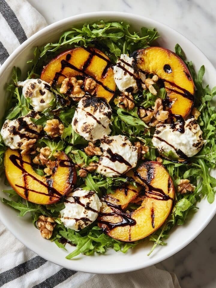 Grilled Peach Salad with Arugula and Burrata Recipe