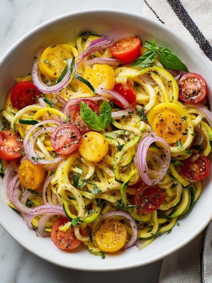 Zucchini Noodle Salad with Cherry Tomatoes and Lemon Dressing Recipe