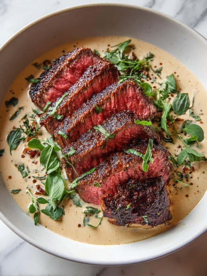 Cast Iron Bavette Steak with Whiskey Garlic Cream Sauce Recipe