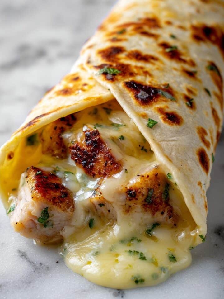 Ooey-Gooey Cheesy Garlic Chicken Wraps Recipe
