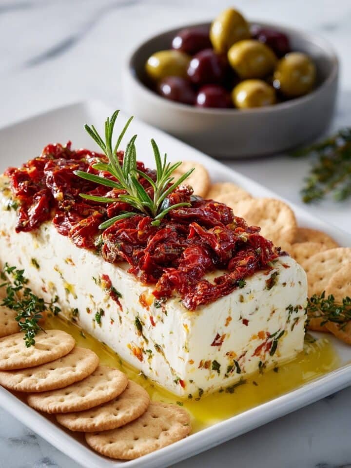 Cheese Log with Roasted Peppers, Salami, and Sun-Dried Tomatoes Recipe