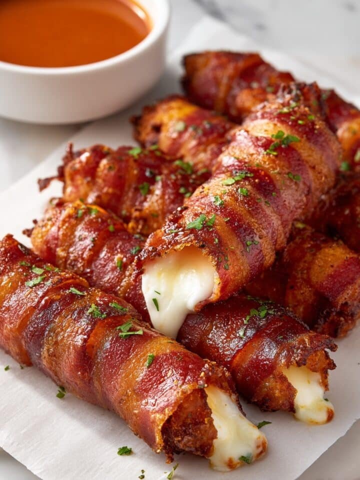 Nashville Hot Bacon Wrapped Mozzarella Sticks Recipe
