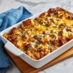 This hearty Breakfast Casserole combines savory breakfast sausage, cubed bread, and melted Cheddar cheese baked in a creamy egg mixture. Perfect for a cozy morning meal, this dish is easy to prepare ahead and bake for a comforting and flavorful breakfast or brunch.