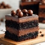 Decadent Chocolate Cheesecake Bars featuring a crunchy Oreo crust, silky chocolate cheesecake filling, and a rich chocolate ganache topping. Perfectly balanced with bittersweet chocolate and smooth cream cheese, these bars are an indulgent dessert ideal for chocolate lovers.