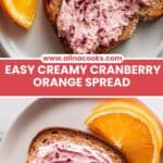 A festive and creamy Christmas & Cream Spread featuring smooth cream cheese blended with whipped cream, fresh orange zest, and sweet whole berry cranberry sauce. Perfect as a flavorful topping for toast, English muffins, waffles, or as a delightful fruit dip during the holiday season.