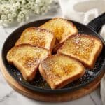 This classic French Toast recipe features thick-cut bread soaked in a rich, spiced egg and milk custard, then pan-fried to golden perfection. It's a delicious and comforting breakfast treat, garnished with powdered sugar and maple syrup for an irresistible sweet finish.