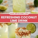 Use clear glasses to show off the pale, sparkling drink and emphasize those bright lime slices and golden coconut flakes on top. A fun—I mean really fun—presentation trick is to rim your glass with a little sugar mixed with lime zest for extra sparkle and aroma. A colorful straw or bamboo stirrer adds charm and makes sipping even more enjoyable.