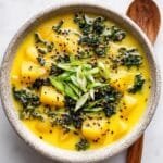 Colcannon Soup is a creamy, comforting Irish-inspired dish that combines tender potatoes, cabbage, kale, and leeks in a flavorful vegetable broth. This hearty soup is pureed for a smooth, velvety texture and enriched with butter and milk for a rich finish. Garnished with fresh green onions, it makes a perfect warming meal for chilly days.