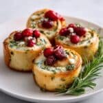 Cranberry Cream Cheese Pinwheels with Feta & Herbs are a delightful appetizer combining flaky puff pastry with creamy cheese, tangy cranberries, and aromatic fresh herbs. Perfectly golden and flaky, these bite-sized pinwheels offer a balance of sweet, savory, and herbal flavors, ideal for holiday parties or casual gatherings.
