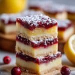 Delight in these zesty Cranberry Lemon Bars that feature a tart cranberry layer atop a buttery shortbread crust, finished with a luscious lemon custard. Perfectly balanced with sweet and tangy flavors, these bars are a refreshing treat ideal for holiday gatherings or anytime you crave a bright, citrusy dessert.