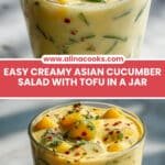 This Creamy Asian Cucumber Salad Bowl is a refreshing, vibrant, and wholesome meal featuring crisp vegetables, protein-rich tofu, and a creamy, spicy dressing. Perfect for make-ahead lunches, it combines fresh cucumber, carrot, edamame, avocado, and a flavorful vegan dressing with a subtle kick of chili and umami from soy and chili-crisp oil. Served straight from the jar or over rice or noodles, this salad is a convenient, nutritious, and delicious light meal or side dish.