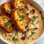 Creamy Reuben Soup is a comforting twist on the classic Reuben sandwich, blending savory corned beef, tangy sauerkraut, melted Swiss cheese, and a creamy broth enriched with Russian dressing. This hearty soup serves as a perfect meal for chilly days, offering all the beloved flavors of a Reuben in a warm, creamy bowl.