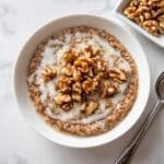 Serve with Toppings: Remove from heat and add a splash of coconut milk and chopped walnuts to add richness and texture. Serve warm for a comforting breakfast.