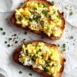 This Egg and Ricotta Toast is a creamy and flavorful breakfast recipe featuring softly scrambled eggs enriched with whole milk ricotta cheese and fresh chives, served on toasted sourdough bread. The gentle cooking method ensures a delicate, fluffy texture complemented by the richness of ricotta, making it a satisfying and elegant morning meal.