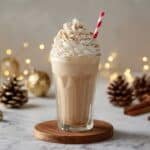 A festive and indulgent Eggnog Bourbon Milkshake combining creamy vanilla ice cream, rich eggnog, and a smooth bourbon kick, topped with whipped cream and a sprinkle of warm spices for the perfect holiday treat or dessert cocktail.