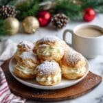 These irresistible Eggnog Cream Puffs combine light and airy choux pastry shells with a rich, creamy eggnog-infused pastry cream, making them the perfect festive dessert for holiday celebrations. The classic flavors of eggnog and nutmeg bring warmth and holiday spirit to this elegant treat.