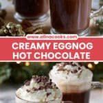 A cozy and festive twist on classic hot chocolate, combining rich hot chocolate with creamy eggnog and an optional peppermint schnapps kick, topped with whipped cream and chocolate or candy cane garnish.