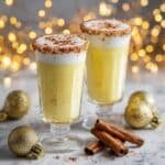 A festive and creamy holiday cocktail that combines rich eggnog with sparkling wine for a bubbly, decadent twist. Perfect for celebrations and toasting special occasions with a hint of warm spices.
