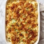 This casserole nails the cozy combination of textures and flavors you crave from classic French onion soup but with a fresh twist — creamy pasta, savory chicken, and a bubbly golden top that’s pure magic.
