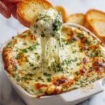 This dip pairs beautifully with a fresh green salad to balance the richness, or alongside a bowl of hearty tomato soup for a cozy combo. It’s also a perfect companion to crisp white wines, light beers, or sparkling water with a squeeze of lemon to cut through the creamy indulgence and keep things refreshing.