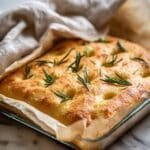 This Gluten-Free No-Yeast Focaccia is a quick and easy bread recipe that produces a soft, fluffy, and flavorful focaccia without the need for yeast or long rising times. Perfect for those following a gluten-free diet, this focaccia uses a blend of gluten-free flours and a combination of baking powder and xanthan gum for a lovely texture. Topped with aromatic fresh rosemary and coarse sea salt, it’s an ideal bread for serving alongside soups, salads, or as a savory snack.