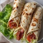 These Gourmet BLT Wraps with Secret Sauce elevate the classic bacon, lettuce, and tomato sandwich by adding marinated tomatoes and a flavorful mayo-based secret sauce. Perfect for a quick, satisfying meal with a fresh twist, these wraps combine crispy bacon, tangy marinated tomatoes, crunchy lettuce, and a zesty flavored mayo all wrapped in low-carb tortillas.