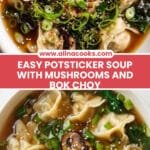 Hearty Potsticker Soup with Mushrooms & Bok Choy Recipe
