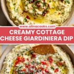 While the dip relies on cottage cheese for its creamy texture and protein, you can swap in a high-protein plant-based yogurt or vegan cottage cheese alternative to try a dairy-free version. The flavor will differ, but the giardiniera still brings great zing.