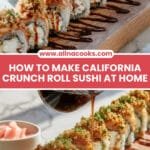 A delicious homemade California Crunch Roll Sushi recipe featuring perfectly seasoned sushi rice, fresh avocado, cucumber, and crab meat, topped with spicy mayo and crunchy panko breadcrumbs for a satisfying texture and flavor combination.