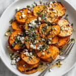 - Add Toppings: Sprinkle crumbled feta cheese evenly over the warm sweet potatoes.