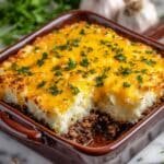 This Keto Beef and Cauliflower Casserole is a delicious low-carb, high-fat meal perfect for those following a ketogenic lifestyle. Ground beef is cooked with aromatic onions, garlic, and Italian seasoning, layered with creamy cauliflower puree blended with heavy cream and cheddar cheese, then baked until golden and bubbly. Garnished with fresh parsley, it offers a comforting and satisfying dish that’s easy to prepare and rich in flavor.
