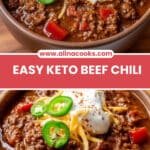A hearty and flavorful Keto Beef Chili made with ground beef, aromatic spices, and no-sugar-added tomato products, perfect for a low-carb, satisfying meal. This recipe simmers tender beef with chili powder, cumin, smoked paprika, and oregano for a rich, warming dish that can be topped with cheese, sour cream, and jalapeños for added zest.