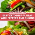 These Keto Beef Fajitas are a low-carb, flavorful twist on a classic Mexican dish. Thinly sliced flank steak is quickly seared and combined with sautéed bell peppers, onions, and spices, then served wrapped in crisp lettuce leaves for a fresh and healthy meal option perfect for keto and low-carb diets.