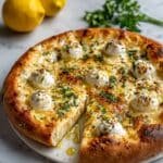 A bright and flavorful lemon pizza topped with fresh herbs, mozzarella, and parmesan cheese. This easy no-knead pizza features a zesty lemon brine that infuses the crust, creating a refreshing twist on a traditional pizza perfect for spring and summer meals.
