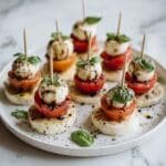 Mini Caprese Salad Bites are a delightful and refreshing appetizer featuring juicy cherry tomatoes, creamy mozzarella balls, and fresh basil leaves, all drizzled with a tangy balsamic reduction. These bite-sized skewers are perfect for parties or light snacks and come together quickly with minimal preparation.