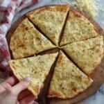 - Slice and Serve: Let the cheesy tortilla garlic bread cool for a minute or two. Then use a pizza cutter to slice into individual servings and enjoy while warm.