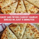 - Cook the Garlic Bread: Air fry for about 5 minutes, watching carefully. Remove as soon as the cheese has melted, turned a deep golden brown, and the edges of the tortillas are crispy.