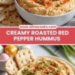 A creamy and flavorful Roasted Red Pepper Hummus made with tender chickpeas, smoky roasted red peppers, tahini, and a hint of garlic and cumin. Perfect as a healthy dip or spread, this hummus offers a vibrant twist on the classic recipe with a smooth texture and bright citrus notes.