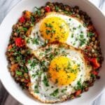 This Savory Lentil Breakfast Bowl features a hearty base of spiced brown or green lentils simmered in vegetable broth, topped with sautéed spinach, creamy avocado, a perfectly cooked egg, and optional feta cheese and fresh herbs. It’s a nourishing, protein-packed breakfast that combines earthy, smoky, and fresh flavors for a satisfying start to your day.