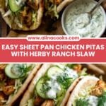This Sheet Pan Chicken Pitas with Herby Ranch Recipe is a perfect blend of flavors and textures that comes together effortlessly on one tray. You'll get caramelized chicken loaded with smoky and a hint of sweetness, complemented by a tangy, cool ranch slaw brimming with fresh herbs that brighten the plate.