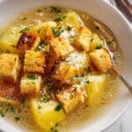 A comforting and hearty garlic potato soup perfect for soothing hangovers. This recipe combines roasted and fresh garlic with tender potatoes simmered in vegetable broth, creating a flavorful and creamy soup that warms you up and revitalizes your senses. Garnished with fresh parsley, crunchy croutons, and optional cheese for extra richness.
